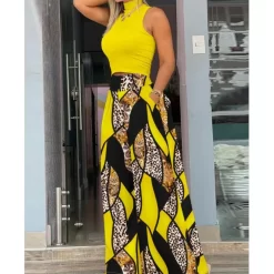 Summer Sleeveless Vest Suit For Women New Fashion Slim Printed Wide Leg Trousers Elegant Female Temperament Office 2 Piece Set